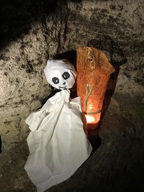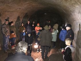 In den verschiedenen Kellern erzählte Moosburger anschaulich mehrere alte Sagen und leichte Gruselgeschichten. Dazwischen durften sich die Kinder mit Klapper- und lärmenden Instrumenten abreagieren und auch gegen die Angst singen.