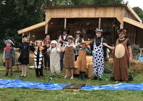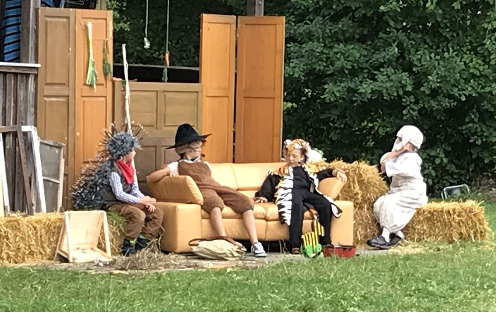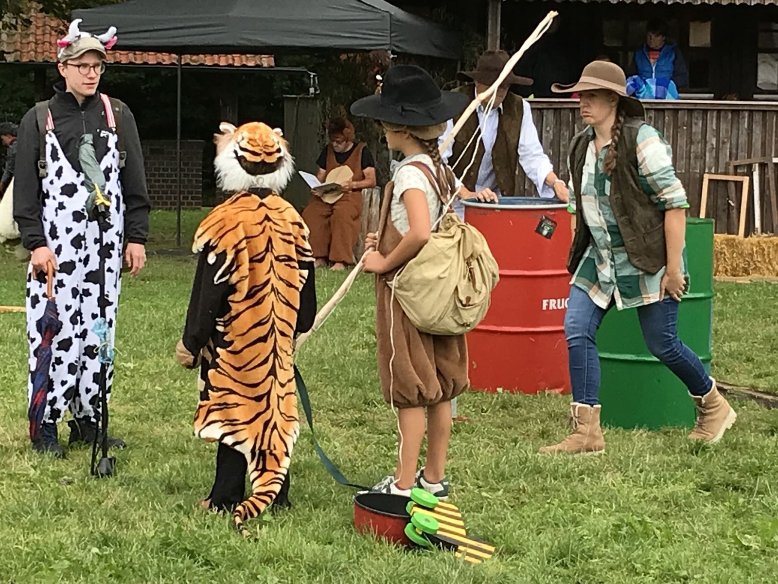 Gespielt wurde wieder im Freilufttheater auf dem Sportplatz in Süß mit Zuschauerzelten. In liebevollen Kulissen im „Janosch-Style“ spielten sieben Kinder in großartigen Kostümen, die man von Beate Stock aus Vohenstrauß geliehen hatte.