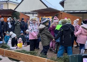 Der Süßer Kindergarten "Der Gute Hirte" brachte mit Sternenliedern und Texten einen „Schimmer ins Zimmer“. Die Kinder der Mittagsbetreuung und "Die Klapperstörche“ des Kindergartens Hahnbach wichtelten beeindruckend und schlossen mit „Feliz Navidad“.