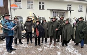 Den gut besuchten Adventsmarkt an der Sankt Jakobuskirche eröffneten am vergangenen Wochenende elf Jagdhornbläser unter Matthias Fenk. Georg Götz, der Vorsitzende des Hahnbacher Kulturausschusses begrüßte und dankte den Standbetreibern und für manch ehrenamtliche Hilfe. Pfarrer Michael Birner verwies auf den historischen Platz und die besondere Zeit des Neubeginns, der Erwartung und der Begegnung. Bürgermeister Bernhard Lindner dankte „Häuptling“ Georg Götz und verschenkte Weihnachtspinsel.