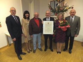 Nach einstimmigem Beschluss des Marktgemeinderates wurden Dr. Franz Prösl, dem ehemaligen Hausarzt in Hahnbach, für seine Verdienste um die Bevölkerung die Bürgermedaille in Bronze und der Ehrenbrief des Marktes Hahnbach verliehen. Voll besetzt war der weihnachtlich geschmückte Sitzungssaal des Rathauses bei der Jahresabschlusssitzung des Marktgemeinderates. Dabei gehörte es zur Tradition, dass Bürger für oftmaliges und unentgeltliches Blutspenden (Bericht folgt) und verdiente Persönlichkeiten geehrt werden.